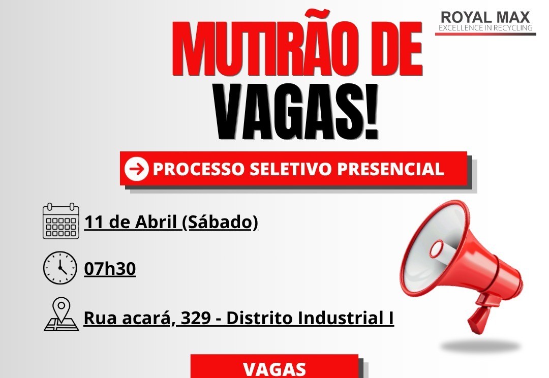 O mutirão de vagas Royal Max oferece oportunidades para ambos os sexos. As vagas são operacionais, ideais para quem deseja trabalhar na área logística e industrial.