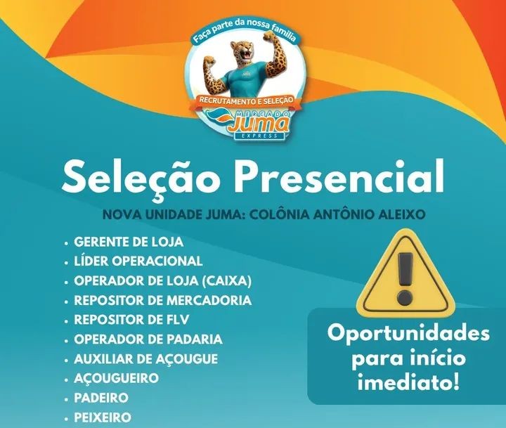 O Mercado Juma Express está com uma grande oportunidade para quem busca emprego em Manaus, principalmente para moradores da região da Colônia Antônio Aleixo. A empresa anunciou um recrutamento presencial com diversas vagas e possibilidade de início imediato.