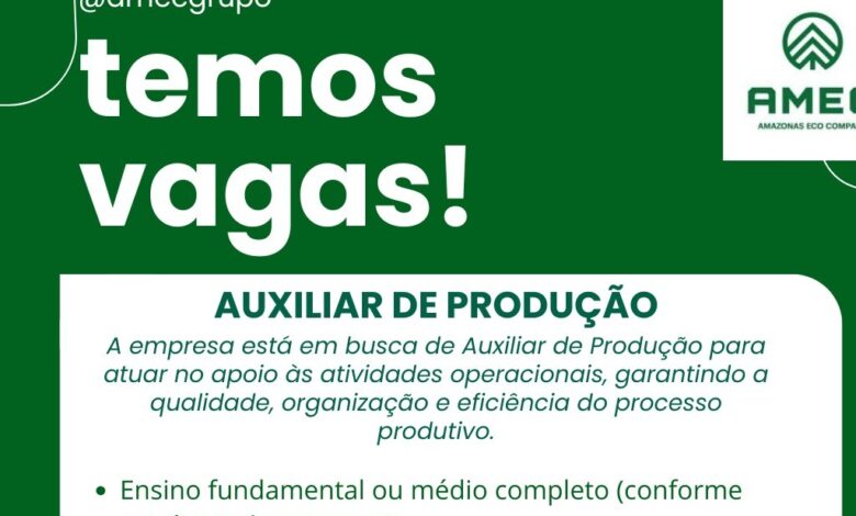 AMEC – Amazonas Eco Company está contratando Auxiliar de Produção no Amazonas. Vaga com requisitos simples, ideal para quem busca emprego na indústria. Saiba como se candidatar.