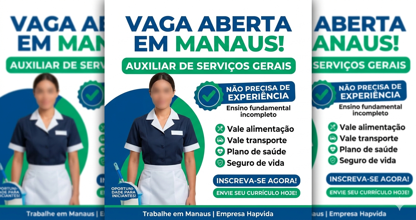 Quer trabalhar em Manaus? Veja todos os detalhes da vaga de Auxiliar de Serviços Gerais na Hapvida, requisitos, benefícios e como se candidatar agora mesmo!