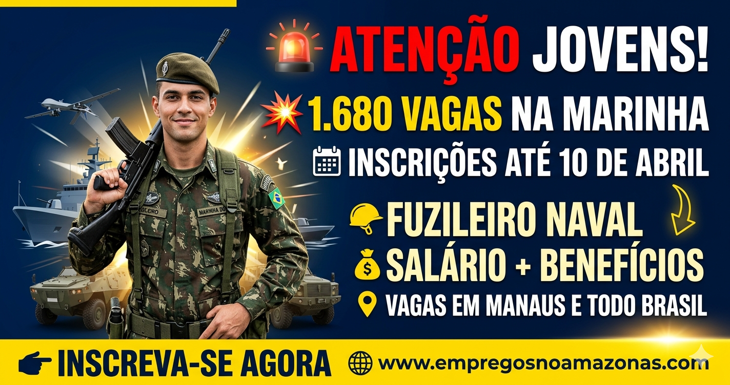 Se a busca é por uma vaga de emprego em Manaus com estabilidade, salário fixo e chance de crescimento, esta pode ser a oportunidade ideal. A Marinha do Brasil abriu inscrições para o concurso de Fuzileiro Naval, com 1.680 vagas disponíveis em várias cidades do país, incluindo Manaus.