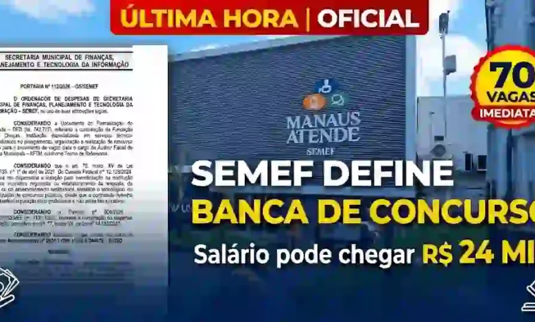 Semef define a FCC como banca do concurso para Auditor Fiscal em Manaus. Serão 70 vagas com salário de até R$ 24 mil. Veja detalhes e preparação.