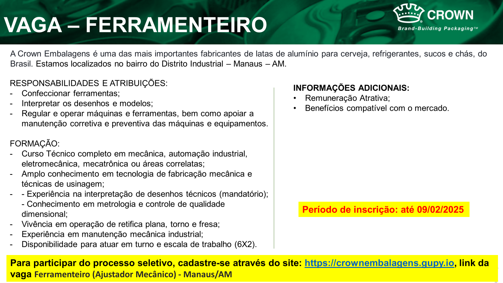 O link para inscrição na vaga é: https://crownembalagens.gupy.io/jobs/7913438?jobBoardSource=gupy_public_page