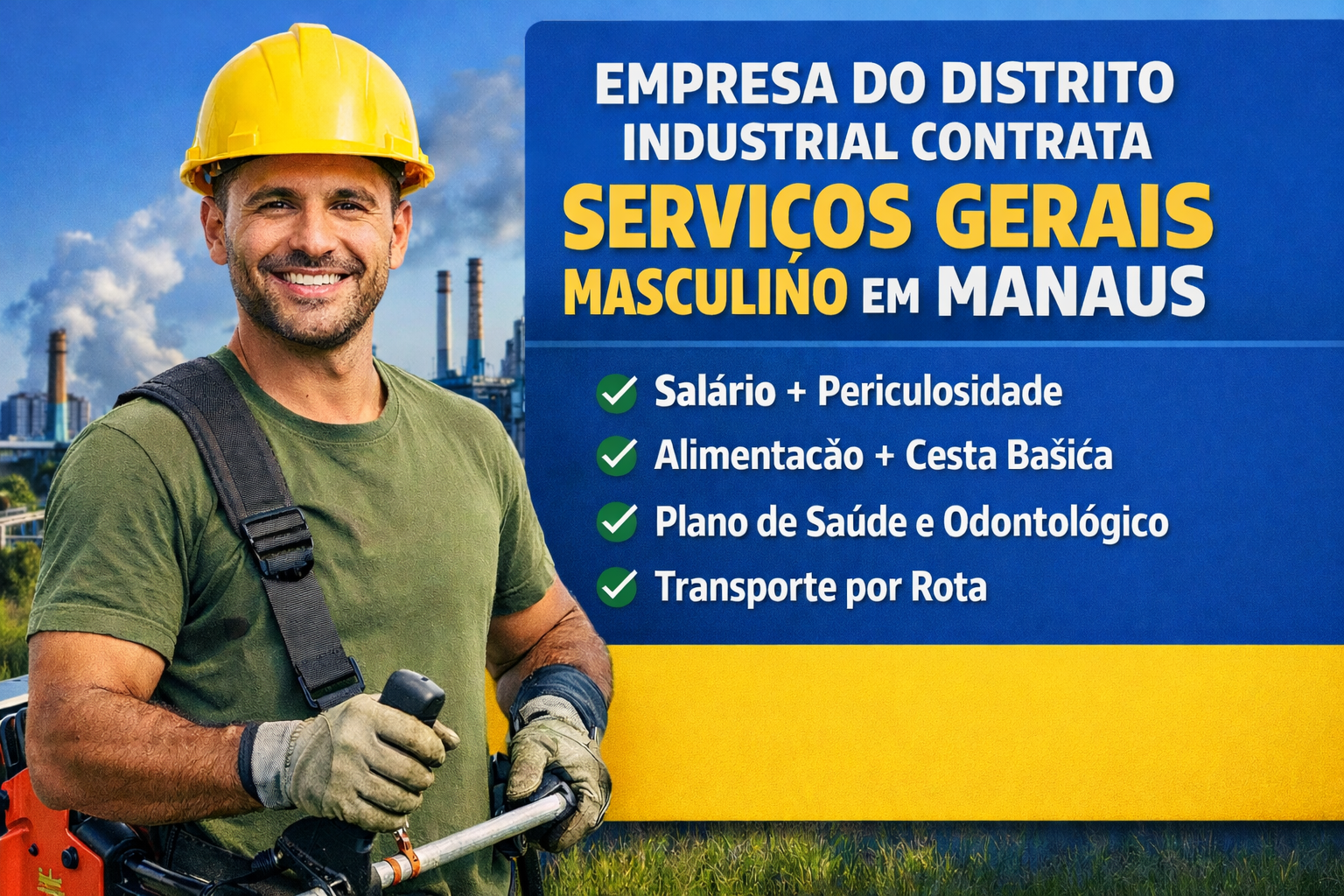 Uma nova oportunidade de emprego em Manaus está aberta para trabalhadores que buscam uma colocação no mercado de trabalho. Uma empresa localizada no Distrito Industrial está recrutando profissionais para a função de Serviços Gerais Masculino, com contratação voltada para pessoas que possuem experiência em atividades braçais e manutenção de áreas externas.