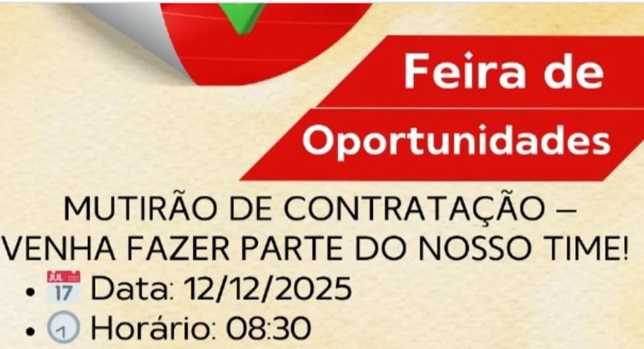 A Feira de Oportunidades chega para ajudar quem busca uma vaga de emprego em Manaus. Esse mutirão de contratação oferece várias chances de trabalho em funções importantes do dia a dia, especialmente para quem deseja começar rápido e construir uma nova fase profissional. O evento será realizado no dia 12 de dezembro de 2025, às 08h30, na Av. Buriti, 4010 – Distrito Industrial I.