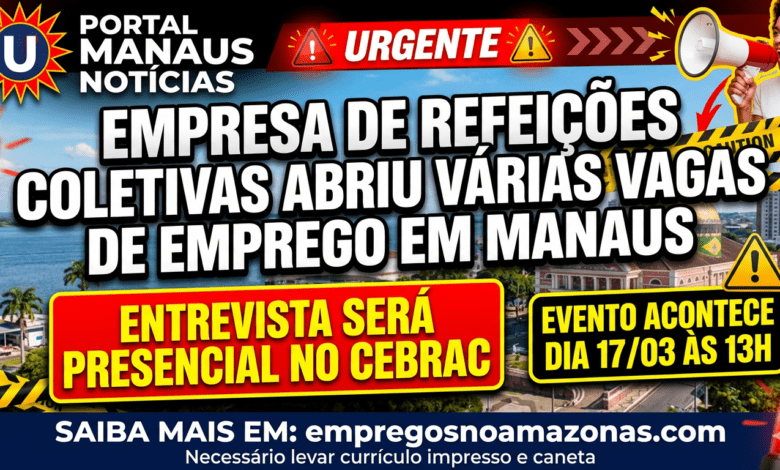 Empresa de refeições coletivas realiza entrevista presencial em Manaus no dia 17/03 no CEBRAC. Veja todas as vagas de emprego, como participar do feirão da empregabilidade e o que levar para a seleção.