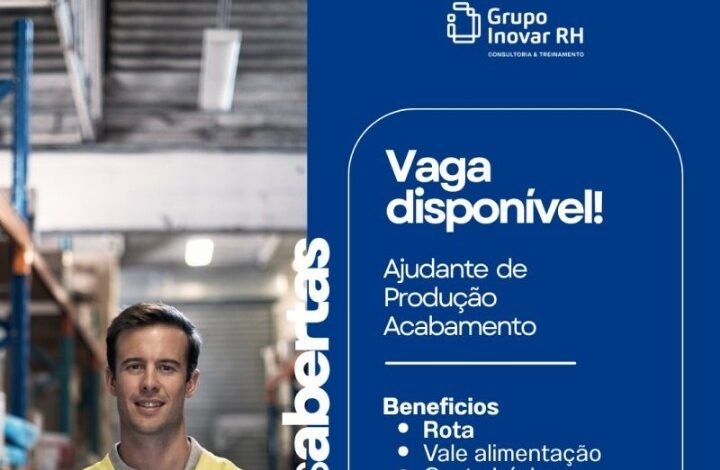 Se você está procurando vaga na área industrial e deseja iniciar ou crescer na produção, o Grupo Inovar RH anunciou nova oportunidade para Ajudante de Produção – Acabamento.