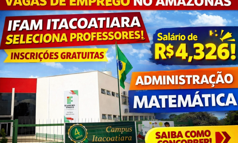Processo seletivo do IFAM abre vagas para professores de Administração e Matemática em Itacoatiara. Inscrições gratuitas até 31 de março. Saiba como participar.