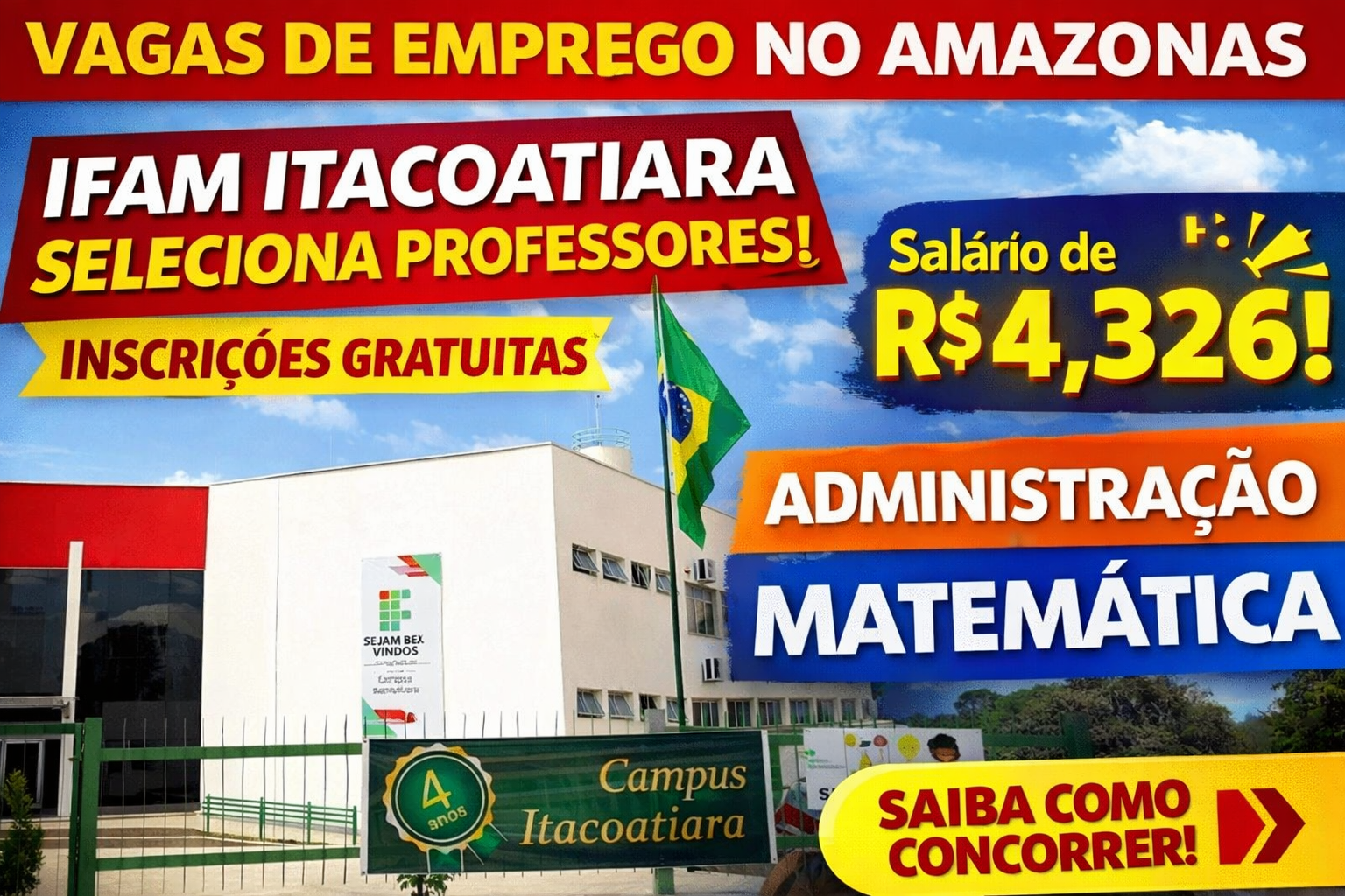 Processo seletivo do IFAM abre vagas para professores de Administração e Matemática em Itacoatiara. Inscrições gratuitas até 31 de março. Saiba como participar.