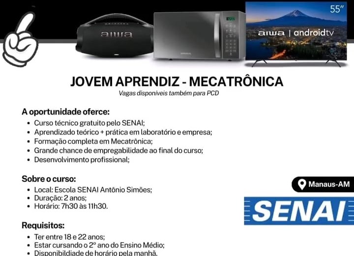 👉 SENAI abre seleção para instrutor de nível médio em Manaus: veja requisitos e como se inscrever