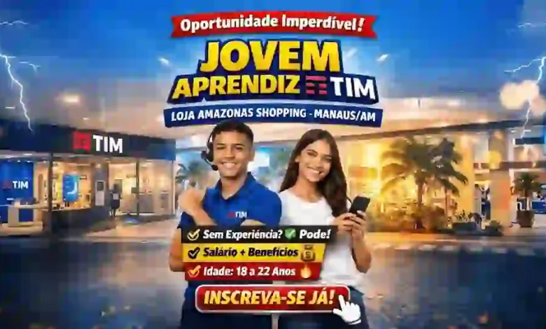 Jovem Aprendiz TIM em Manaus: vaga no Amazonas Shopping com benefícios e sem experiência. Inscreva-se antes de 07/06/2026