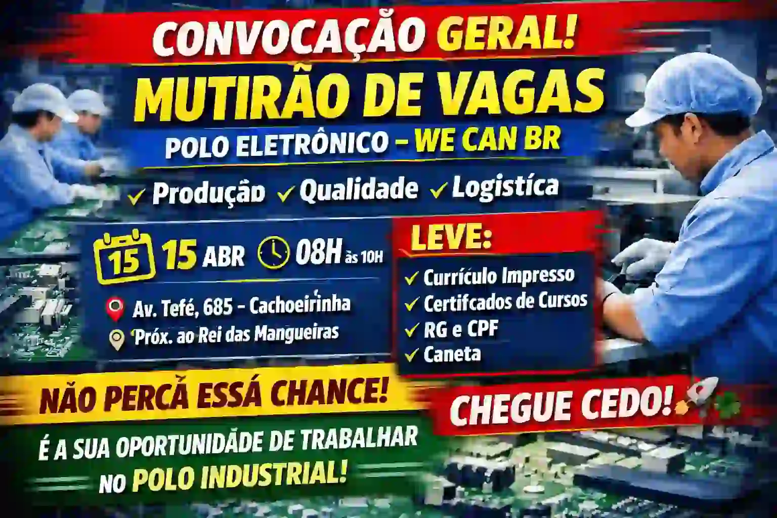 O mutirão promovido pela We Can BR é uma excelente oportunidade para quem deseja trabalhar no Polo Industrial de Manaus.