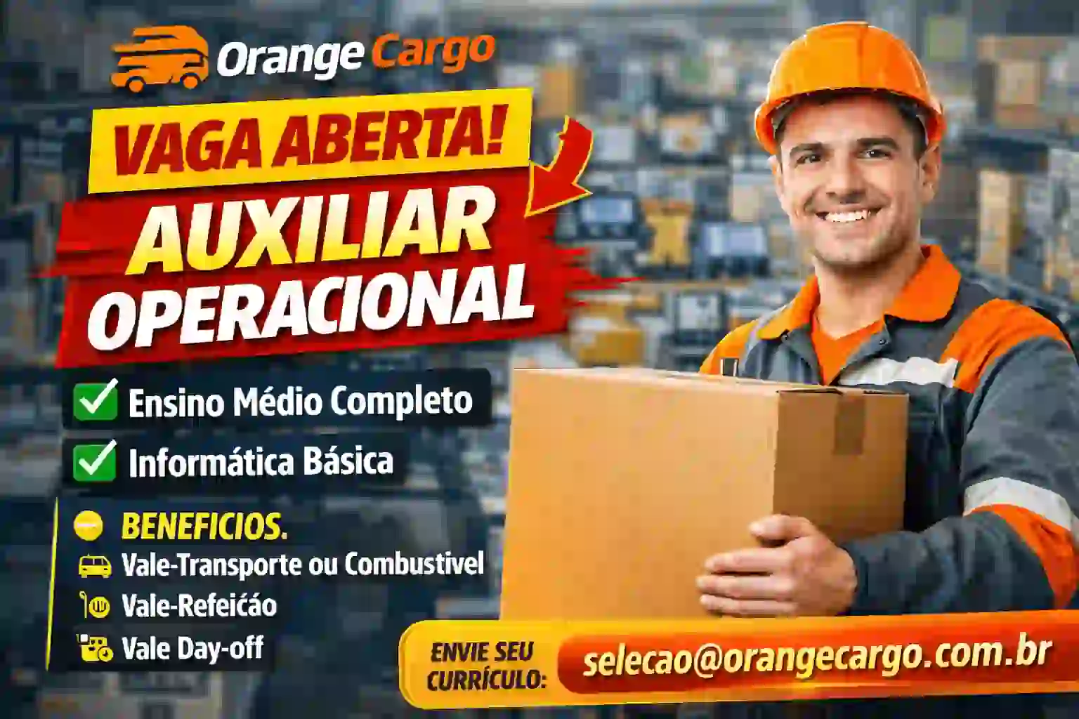auxiliar operacional orange cargo, vagas logística 2026, emprego auxiliar operacional, vagas ensino médio completo, trabalhar em logística, emprego com benefícios, enviar currículo por email