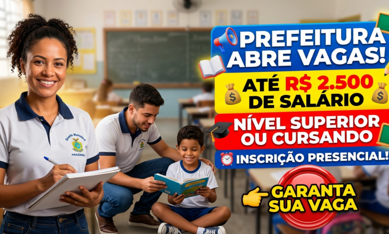 Se a busca é por uma oportunidade de emprego no Amazonas, essa seleção pode ser exatamente o que faltava. A Prefeitura de Pauini abriu vagas para professores e mediadores, com salários que podem chegar até R$ 2.500,00.