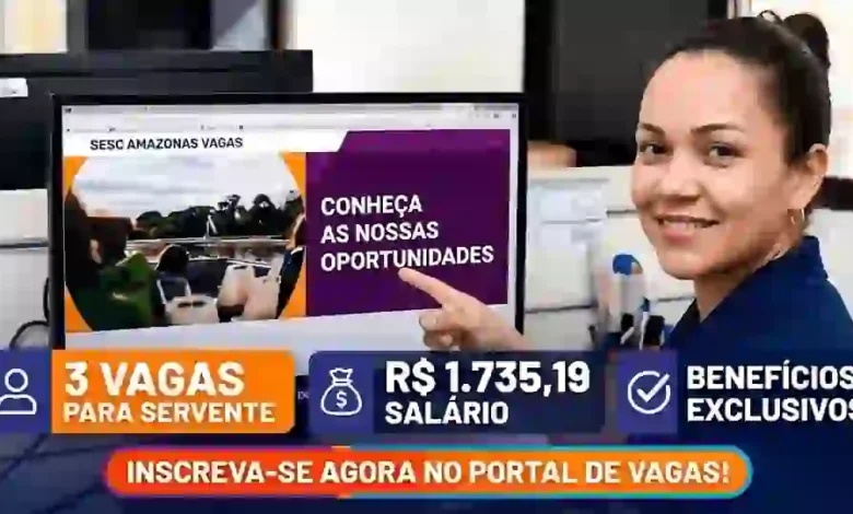 O Sesc Amazonas abriu um novo processo seletivo com três vagas para o cargo de Servente, oferecendo salário de R$ 1.735,19, além de benefícios atrativos. As oportunidades são para atuação em unidades da instituição em Manaus, com contratação no regime CLT.