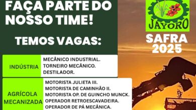 A Jayoro está contratando para a Safra 2025 em Presidente Figueiredo. São vagas para mecânico, motorista, operador e mais. Saiba como enviar seu currículo!