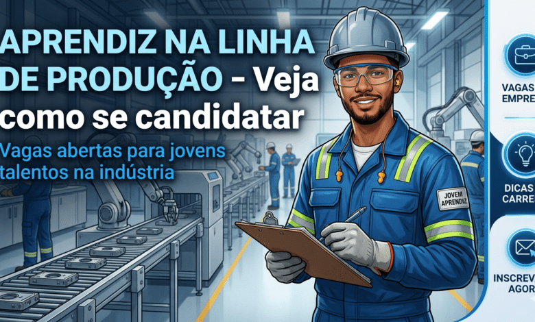 Saiba tudo sobre a vaga de aprendiz na linha de produção para jovens de 18 a 22 anos. Veja requisitos, benefícios, como se inscrever e dicas para conseguir o primeiro emprego na indústria.
