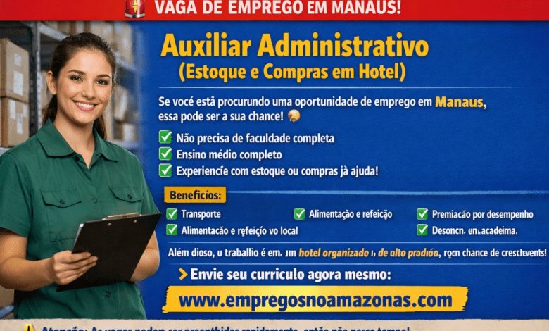 📄 Vaga de Emprego em Manaus: Auxiliar Administrativo (Estoque e Compras) em Hotel – Envie Seu Currículo Hoje!