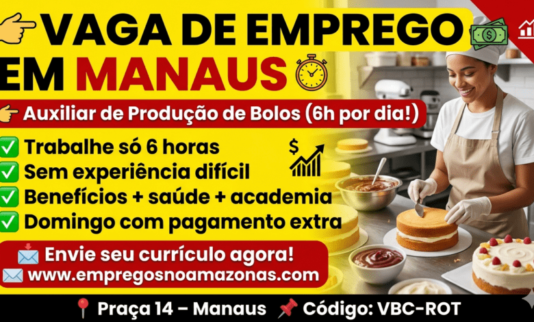 🧁 Vaga de Emprego em Manaus: Auxiliar de Produção de Bolos (Rotulagem) – Trabalhe 6h por Dia!