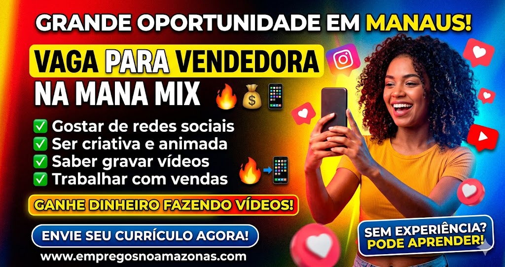 Quer trabalhar em Manaus com vendas e redes sociais? Veja a vaga da Mana Mix, requisitos e como enviar currículo. Aproveite essa oportunidade!