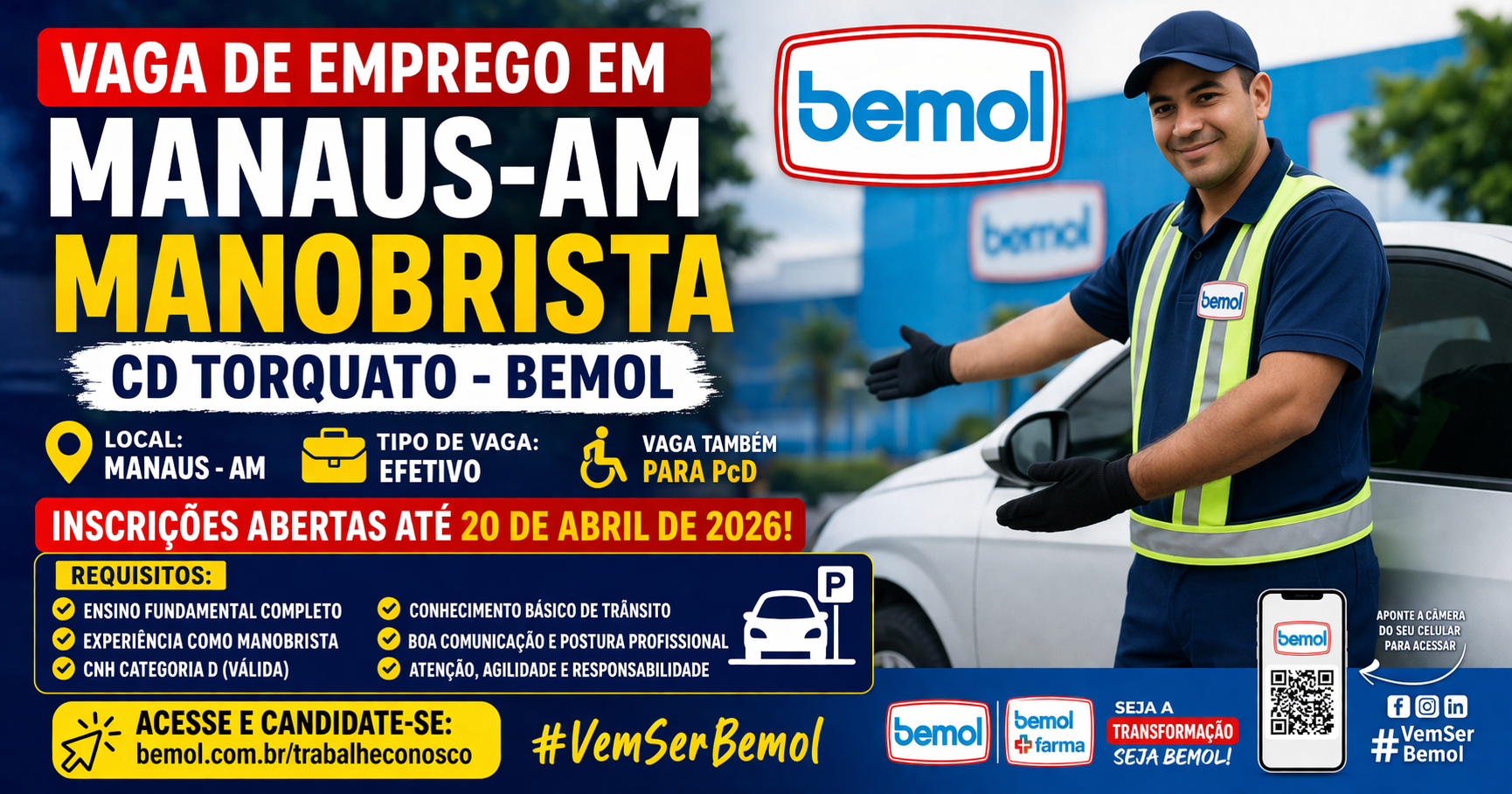Vaga de emprego em Manaus para Manobrista na Bemol! Saiba os requisitos, como se candidatar e dicas simples para aumentar suas chances de conseguir essa oportunidade.