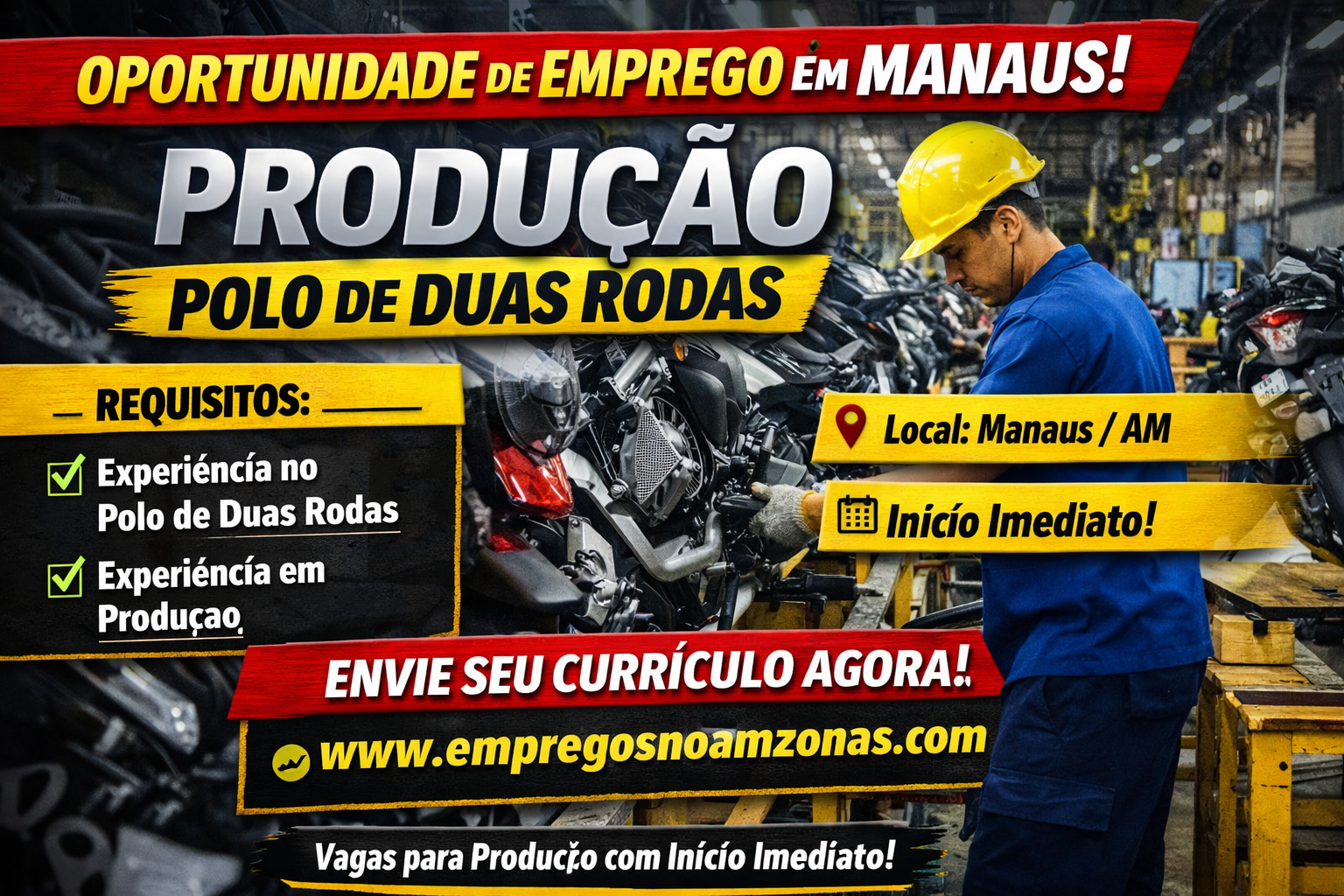 Oportunidade de emprego em Manaus para Produção no Polo de Duas Rodas! Veja requisitos, como se candidatar e dicas para garantir sua vaga hoje mesmo.