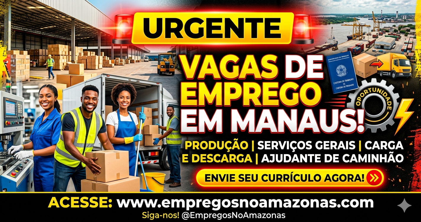 Está procurando vaga de emprego em Manaus? Confira oportunidades para produção, serviços gerais, carga e descarga e ajudante de caminhão. Veja como se candidatar!