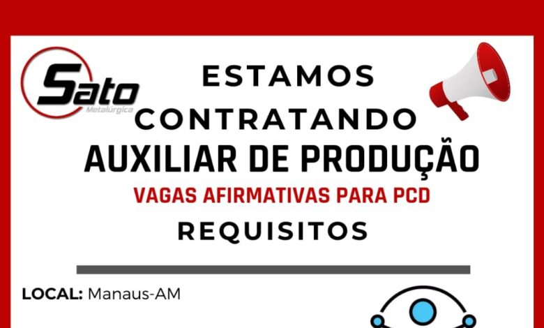 A Sato Metalúrgica está com uma excelente oportunidade para quem busca um trabalho com carteira assinada. A vaga é para auxiliar de produção em Manaus, com chances também para pessoas com deficiência (PCD), o que torna essa oportunidade ainda mais inclusiva.