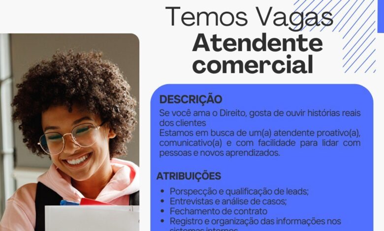 Ao longo deste artigo, todas as informações sobre a vaga de atendente comercial, funções, requisitos, benefícios e como enviar o currículo serão explicadas de forma clara, direta e fácil de entender.
