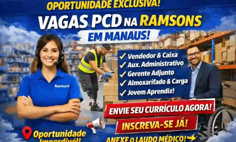 PCD em Manaus, vagas PCD Ramsons, emprego para deficientes Manaus, vagas exclusivas PCD, primeiro emprego Manaus, jovem aprendiz PCD, vagas no varejo Amazonas