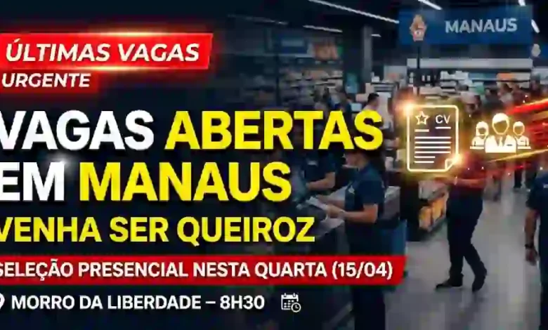 Vagas urgentes em Manaus: Queiroz realiza seleção presencial – saiba como participar